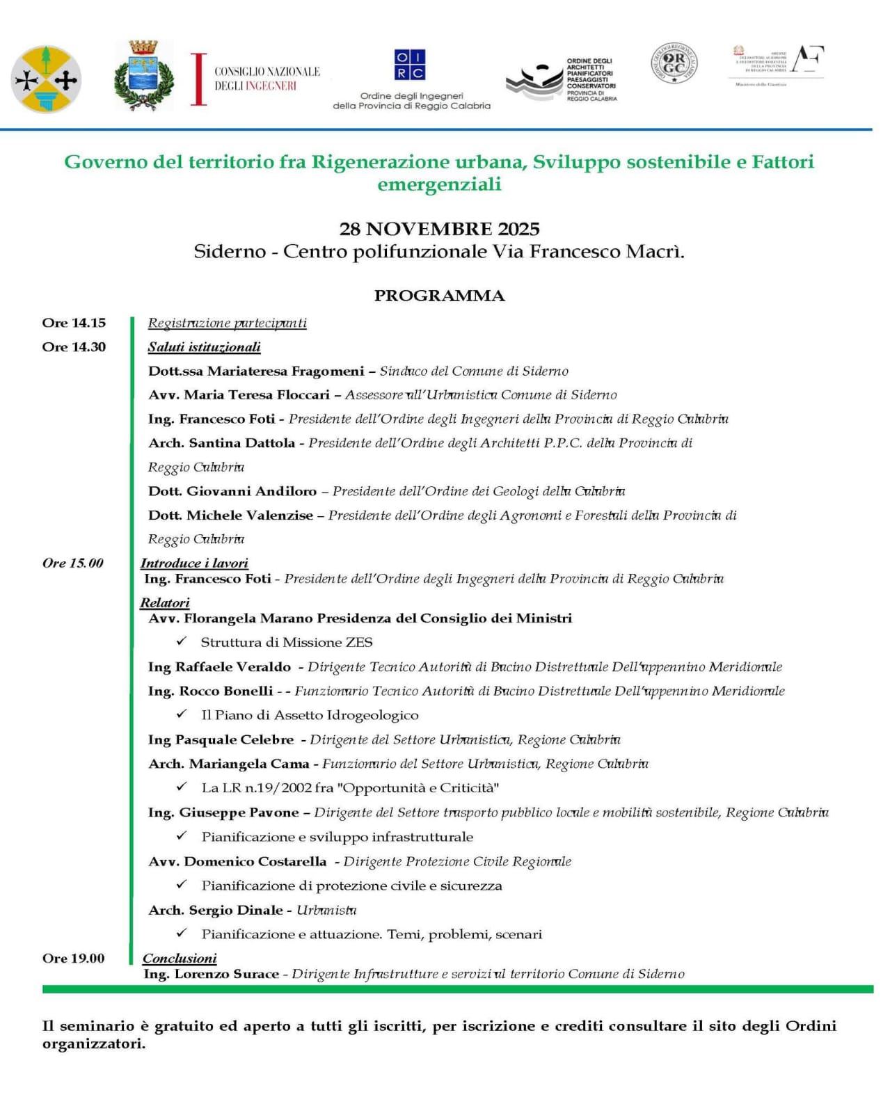 Evento gratuito, valido ai fini APC - 4 crediti formativi per geologi